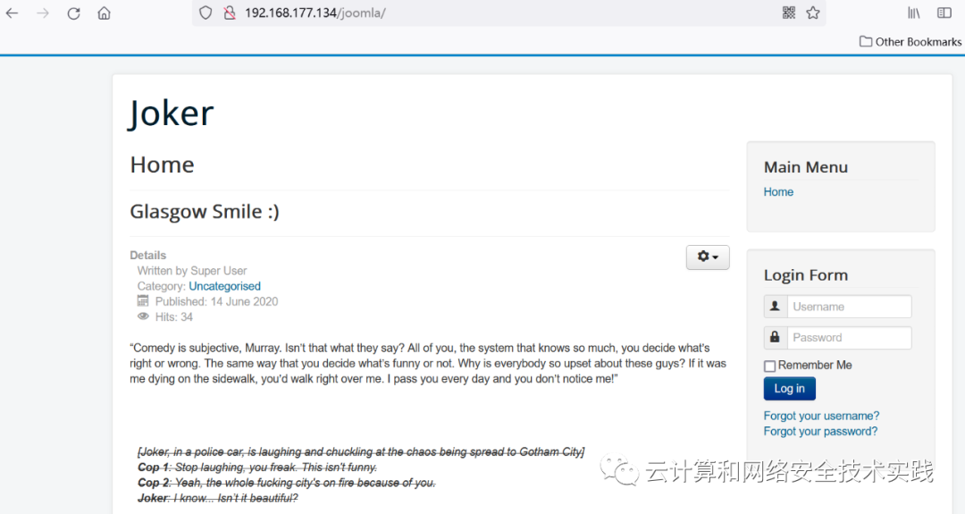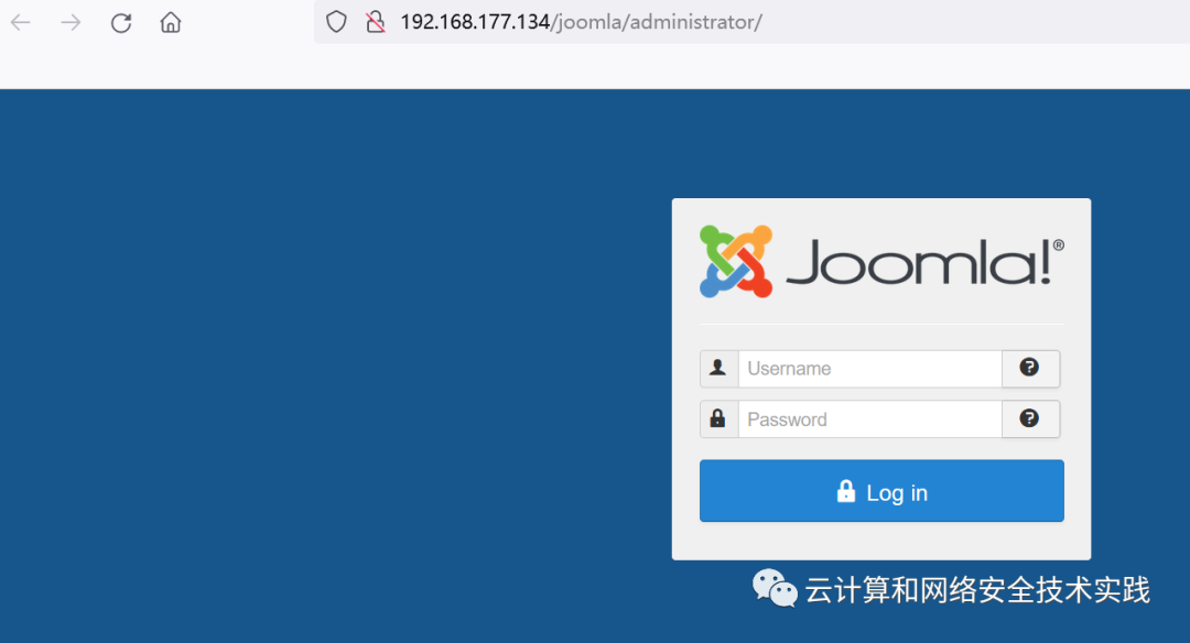 浏览器登录,http://192.168.177.134/joomla/administrator,