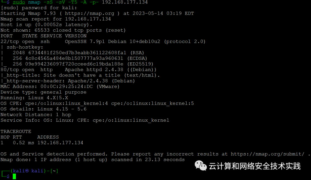继续做端口扫描,sudo nmap -sS -sV -T5 -A -p- 192.168.177.134,
