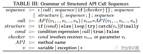 本文的变异依赖于源代码的全面性,需要其有着正确的 API 用法,如果代码中不存在该代码正确的使用,自然无法获得误用情况,也就无法获取任何误用模式,从而无法检测