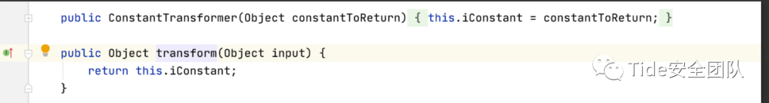 逐语句分析,ConstantTransformer#transformer会返回传入对象本身即Runtime的类对象。