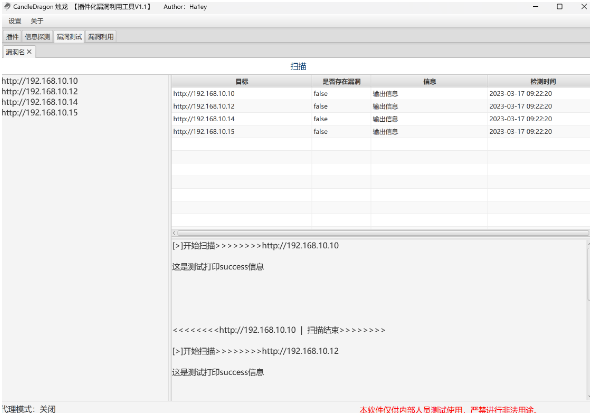 左侧区域每行填写一个检测地址,点击扫描可以根据插件定义的条件输出到表格中。