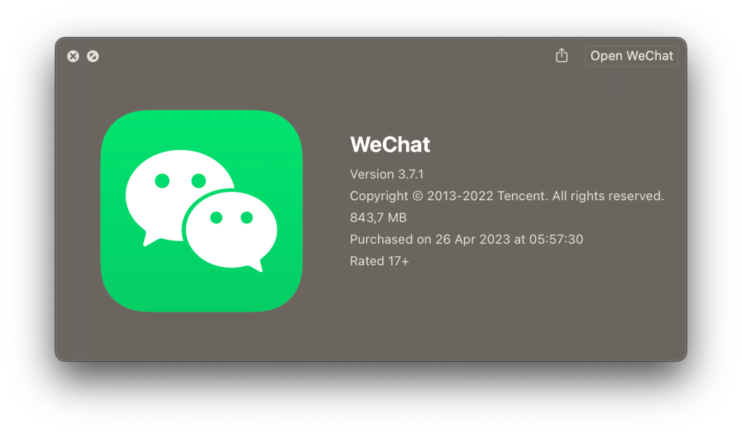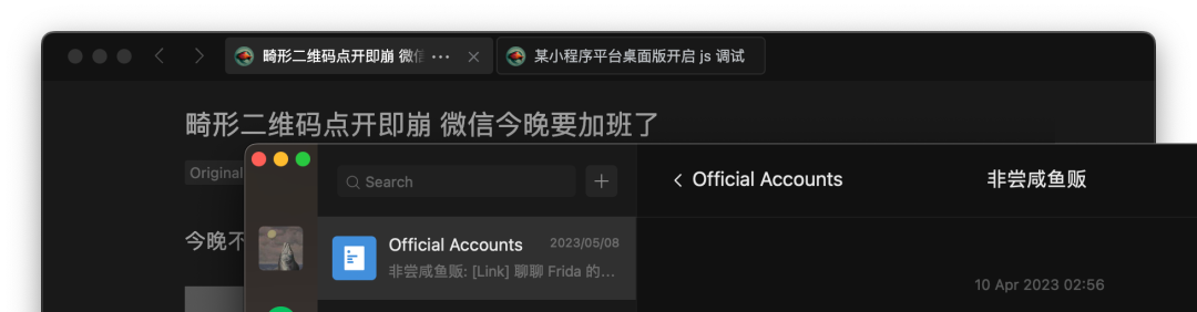 defaults write com.tencent.xinWeChat com.weixin.webview.force.defaultbrowser 1其实我除了 VSCode,对其他套壳 Chrome 容忍度很低。更何况 iPhone 和电脑传文件的需求用 AirDrop 更方便。直接删了
