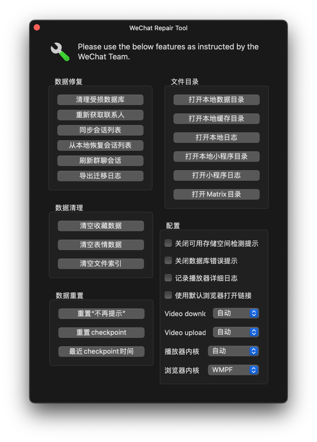control + option + command + R 打开微信修复工具,然后勾选使用默认浏览器打开链接