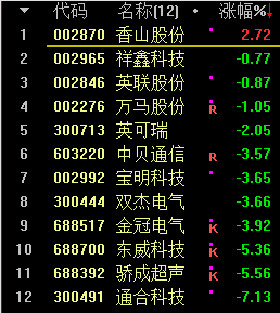 (上图是周五收盘那12只票的涨跌幅情况,为啥我截图了呢,因为当时复盘留着用来证明,充电桩有多不值得买。)