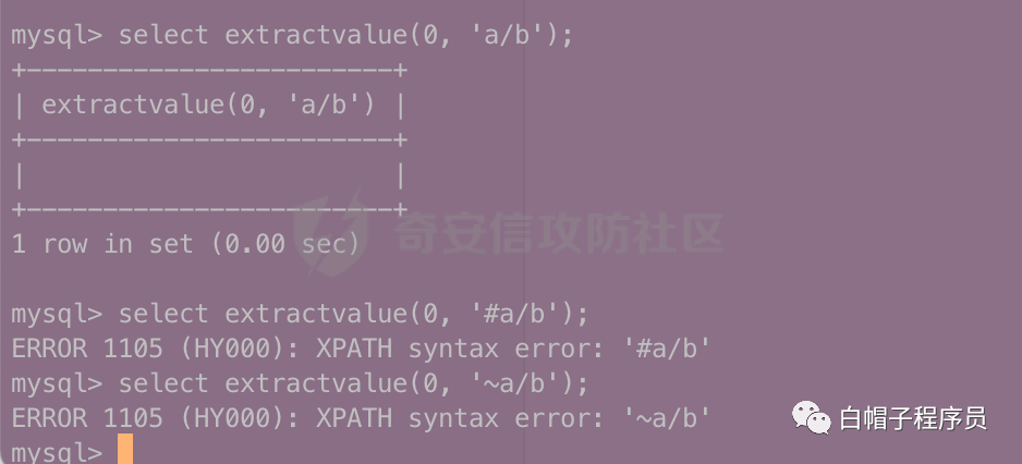 mysql> select extractvalue(0, '[email protected]');