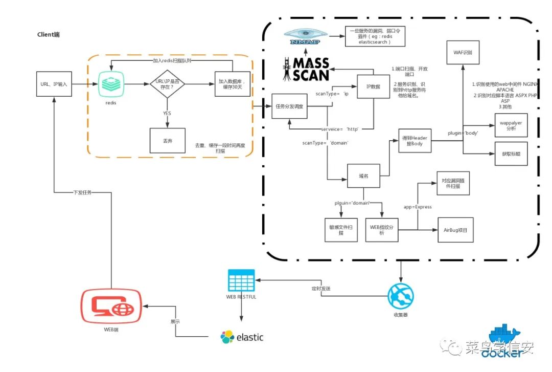 在程序架构设计就考虑到了这一点,扫描端只接受任务,最后的结果只和WEB端进行交互,所以在分布式上十分容易,直接在另一台机器上运行扫描端即可。能基于docker进行分布式,也能很方便集成celery服务。