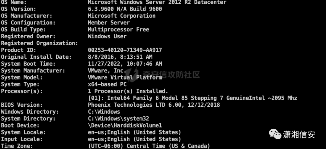 因为前期拿到了边缘机,这里查看systeminfo,发现是2012R2的主机。