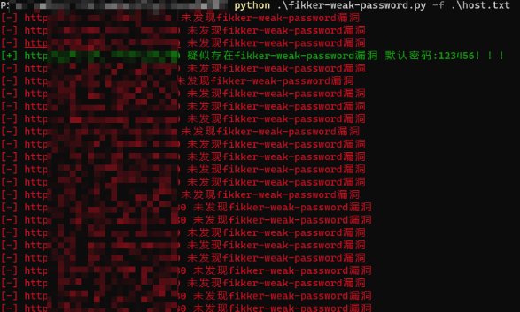python .\fikker-weak-password.py -f .\host.txt2、疑似存在弱口令的url会被标记为绿色,结果都会存在res.txt文本中