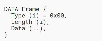 DATA 帧 (type=0x00) 传送与 HTTP 请求或响应内容相关的任意可变长度字节序列。