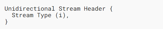 任意一个方向的单向流都可用于不同的用途。其目的由流类型表示,该流类型在流的开头作为可变长度整数发送。这个整数后面的数据的格式和结构由流类型决定。