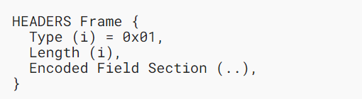 HEADERS 帧 (type=0x01) 用于携带使用 QPACK 编码的 HTTP 字段部分。