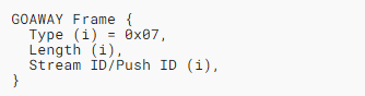 在客户端到服务器的方向上,GOAWAY帧携带一个被编码为变长整数的Push ID。