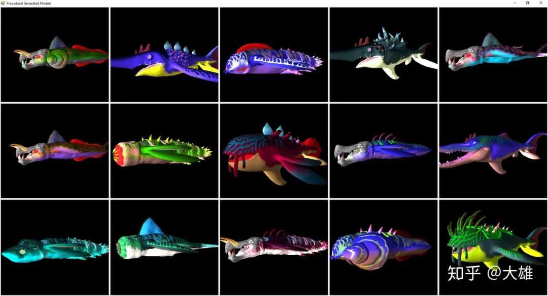游戏《无人深空》中使用程序化生成的海洋生物示例