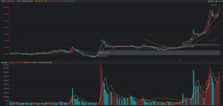 看上图,低位两个高开天量音量,这种才上涨了20%,也有一些个股涨了没多少就被砸的,那我们怎么确定这是主力在出货还是在建仓?看后边的股价走势,下一个交易日竞价涨停,论术就是在这天买入的。而且相比前两个交易日量能极度萎缩。说明什么?说明筹码高度集中,惜售。那么答案就出来了。