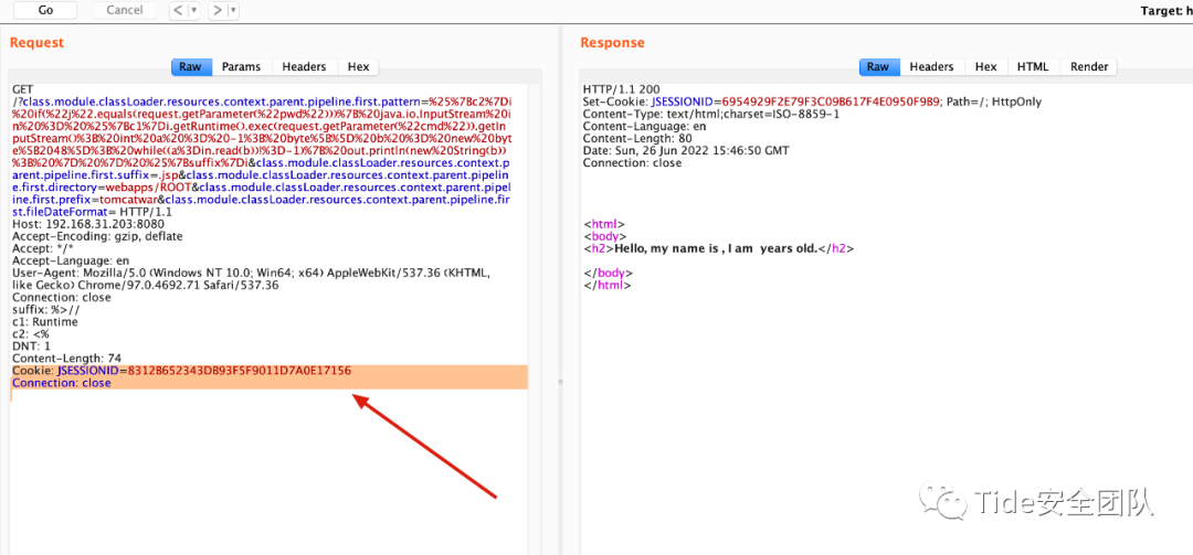 访问对应的controller,这里设置了日志的文件名、文件路径、以及后缀名,将后缀名设置为.jsp,然后不断地写入执行命令的jsp代码,从而实现webshell的写入,还需要补充cookie。
