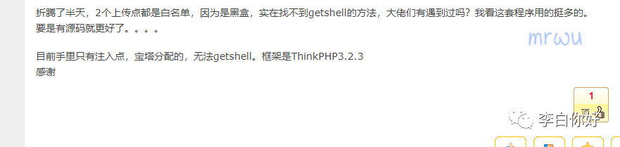 看着功能挺多,以为拿shell没跑了,结果吧,一顿操作,2个上传点均白名单,然后各种瞎折腾,始终拿不下shell,实在没辙了还去土司发了个贴求源码...