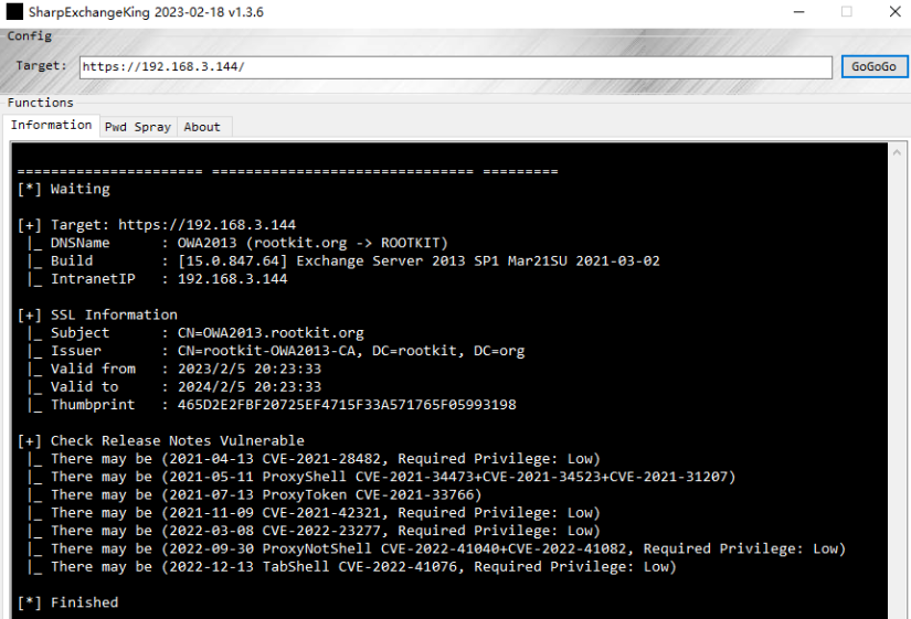 通过 EWS 收集服务器机器名,所在 AD 域获取详细版本号尝试获取服务器内网 IP获取 SSL 证书信息根据版本号来判断是否存在漏洞