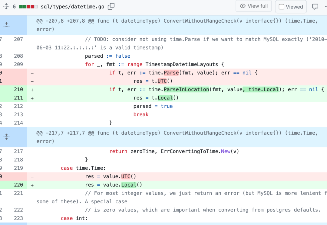这样就能修改时区了。于是我就可以愉快地改单测了。然后顺利提交了我的pr:https://github.com/dolthub/go-mysql-server/pull/1733。