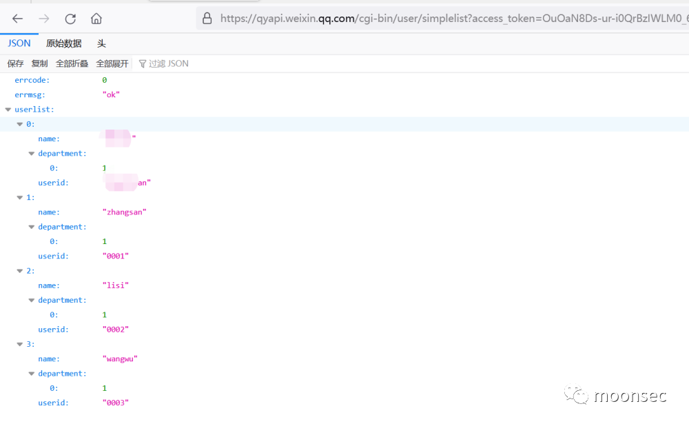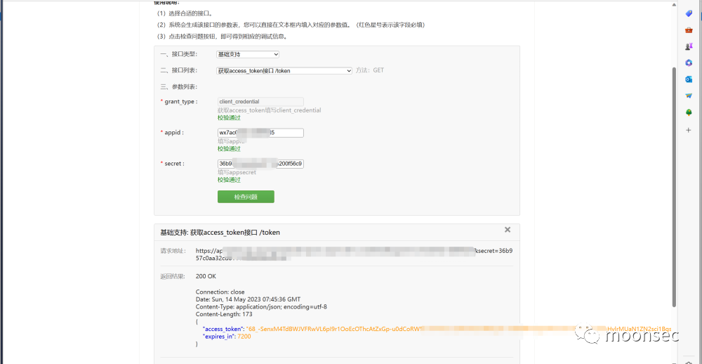 攻击者可以通过这些信息获取企业微信的 access_token 和其他敏感信息,如用户信息、聊天记录等,从而进行恶意操作或者攻击。
