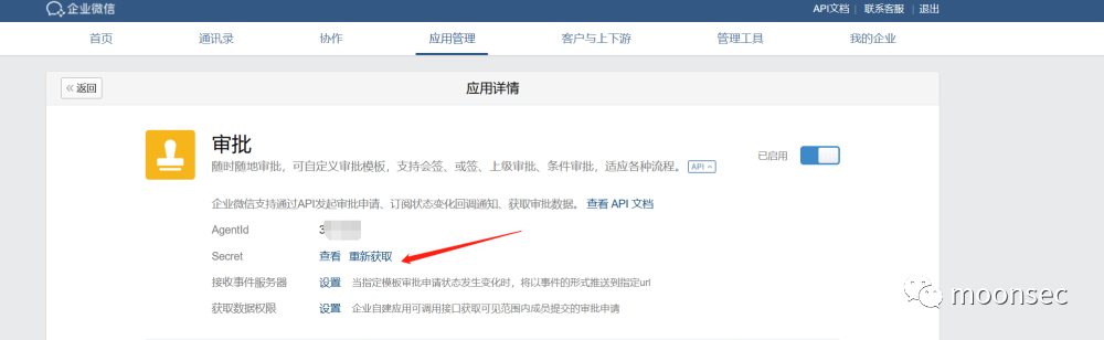获取企业微信API域名IP段就需要拥有"审批"权限,获取"审批"的Secret生成access_token