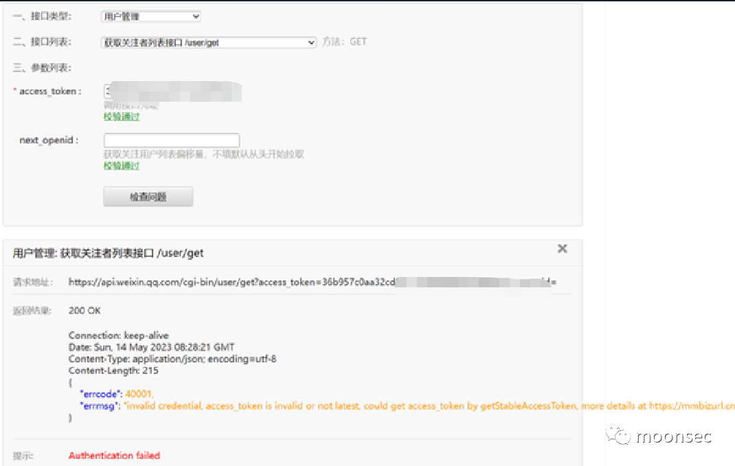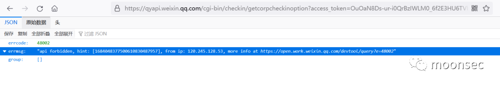 每个secret对应了每个独立的应用,如果用上面生成的access_token请求未授权的应用会导致报错。48002:API接口无权限调用