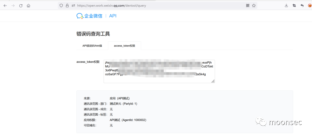 可根据企业微信API查询access_token权限