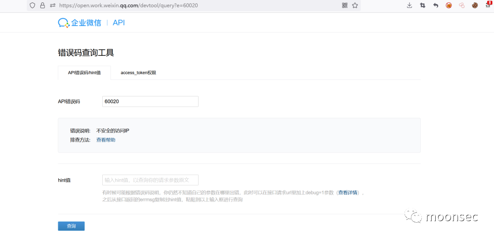 https://open.work.weixin.qq.com/devtool/query?e=60020
