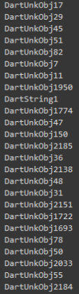 在用map_dart_vm_memory.py加载转储文件并运行create_dart_objects.py脚本后,我们现在至少可以看到一些对象: