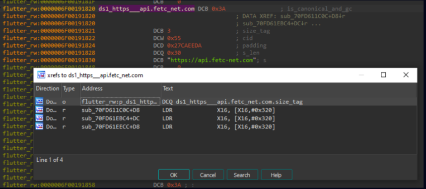 DEX代码中没有服务器通信的痕迹,因此我们可以假设所有通信都位于应用程序的Flutter部分。在分析了与命令控制服务器通信相关的所有功能之后,我们可以描述网络协议。