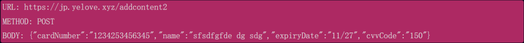 用于约会恶意应用程序的网络诱饵变体使用了非常相似的协议。这是一个泄露信用卡数据的示例: