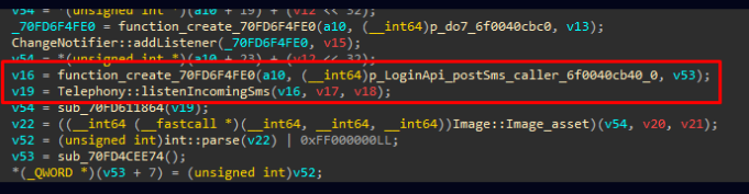 因此,使用sub_70FD611C0C函数将短信泄露到C&C服务器