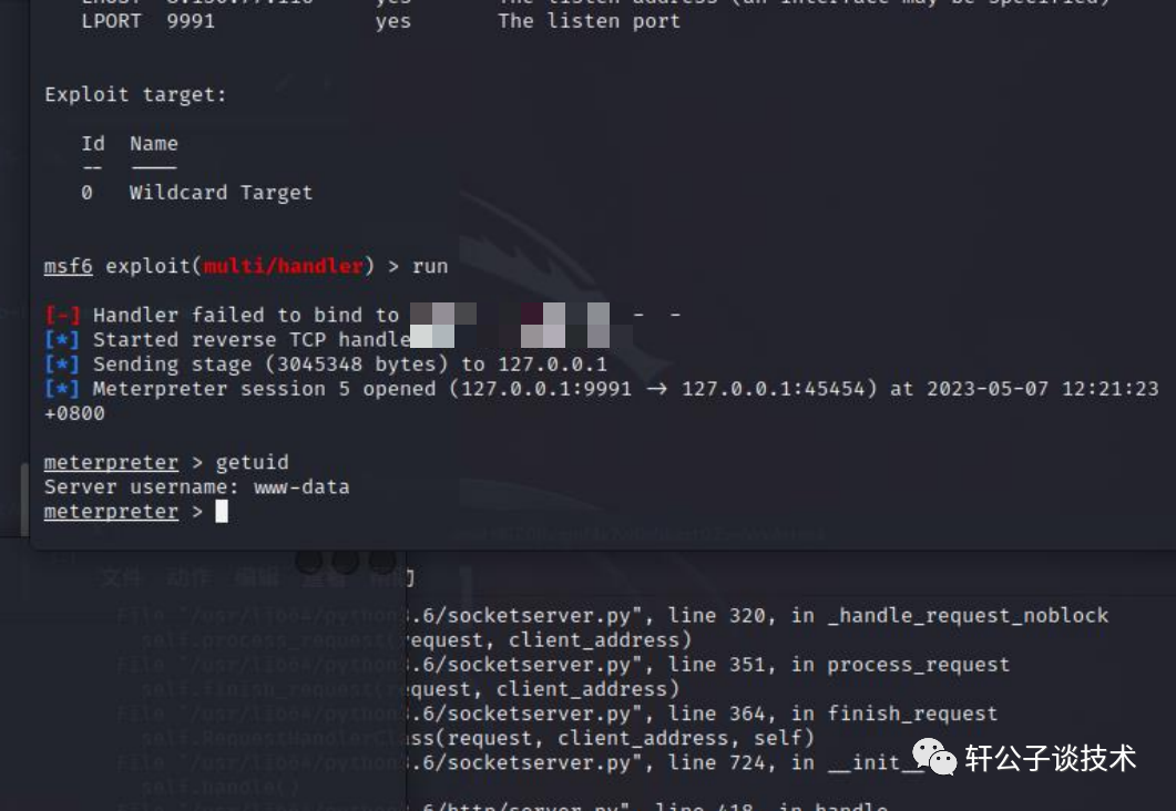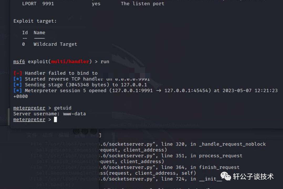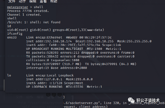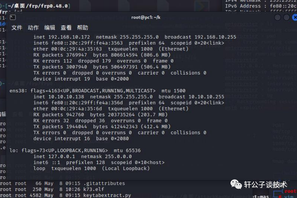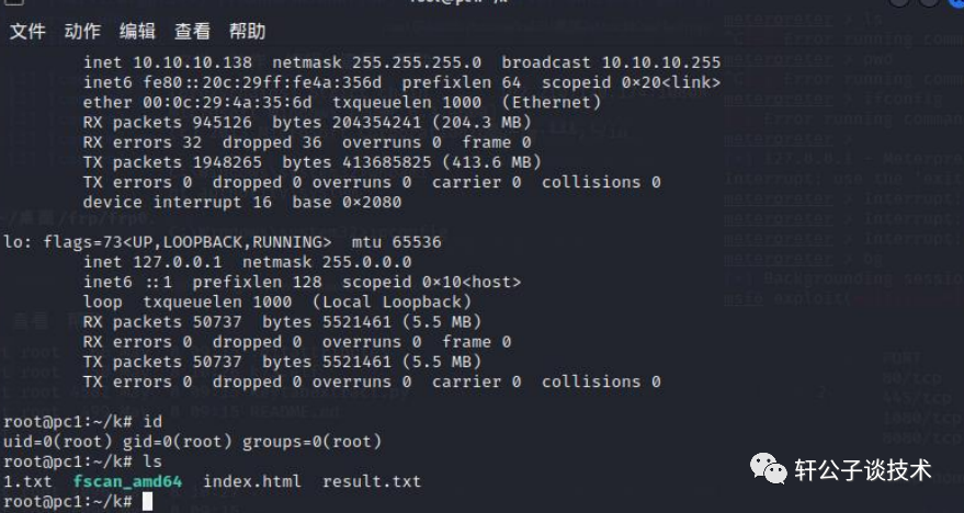 配置好frp,打开msf生成elf通过哥斯拉上传上去,添加执行权限,执行获得msf的会话
