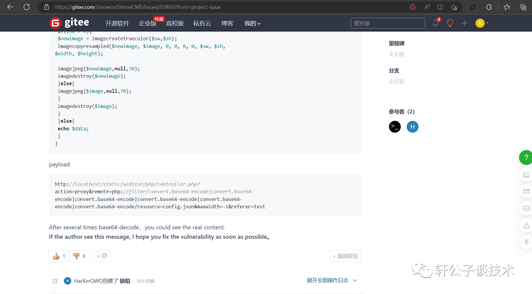 查找shirnecms漏洞发现gitee上有人提交了任意文件读取漏洞: