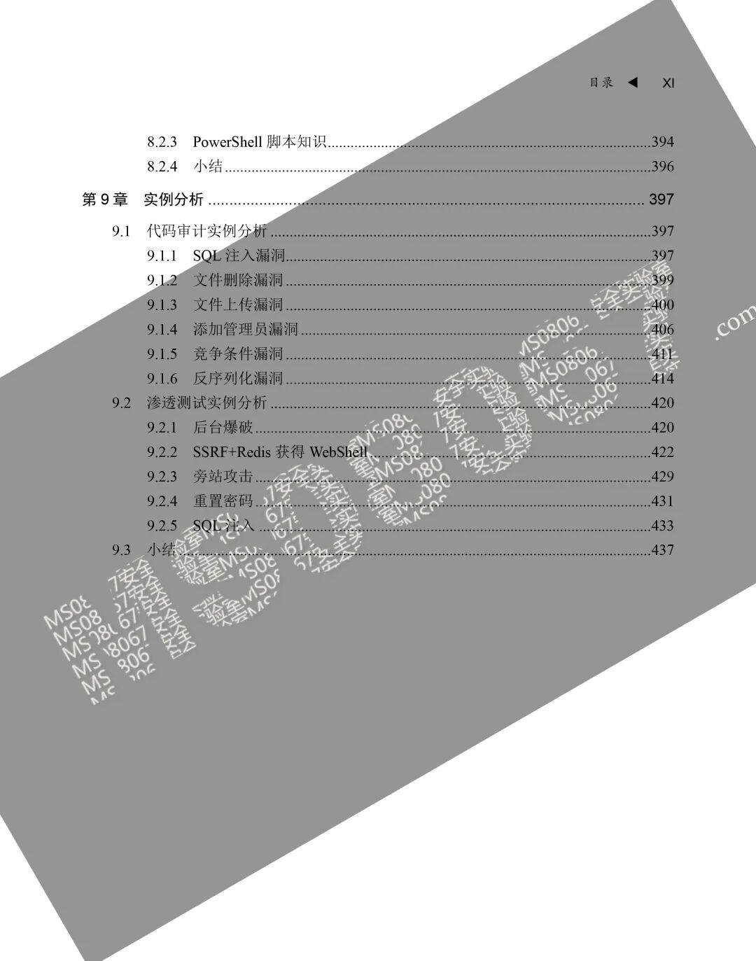 在日常渗透测试工作中,如果了解业务开发场景,往往通过代码审计能够更加提前、全面地发现漏洞,随着安全风险左移的驱动下,代码审计已经成为白盒测试中重要的环节,在行业内扮演了越来越重要的角色。本章主要讲解了代码审计的学习大纲路线与技能要求、工作流程、常见漏洞的审计场景和技巧等,特别是针对SQL注入、水平越权、垂直越权、Java反序列化漏洞列举了大量的实战案例。通过本章的学习能够使读者对常见漏洞的源码成因具有更深刻和具体的认识,提升了读者代码审计漏洞的实践技能和经验。