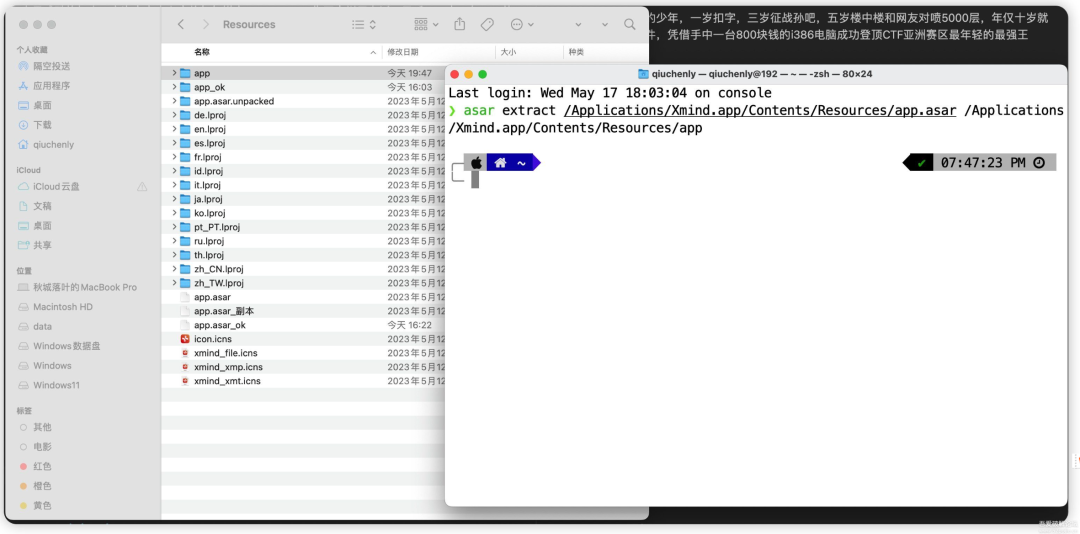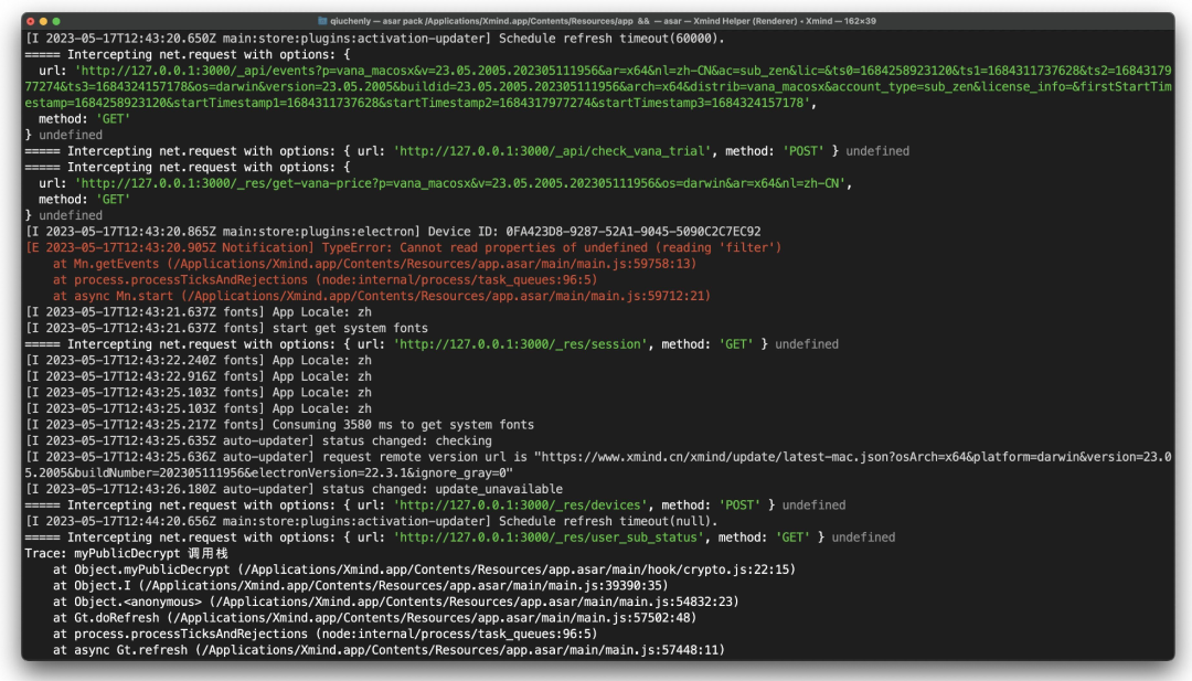 少年此时正在操作 asar 进行解包,那 Xmind 却是依赖了 Electron 技术,本质上还是 Vue3 + Pinia 实现了全平台。