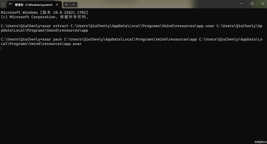 app.asar的路径=Xmind 安装目录中的 resources 文件夹中的app.asar文件完整路径