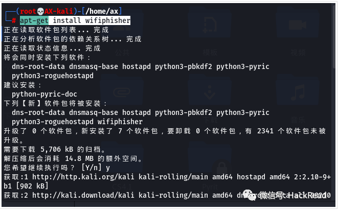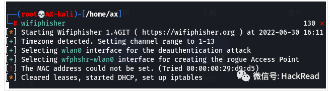 安装wifiphisher,执行以下命令(网卡接入部分就不用说了,上面有)