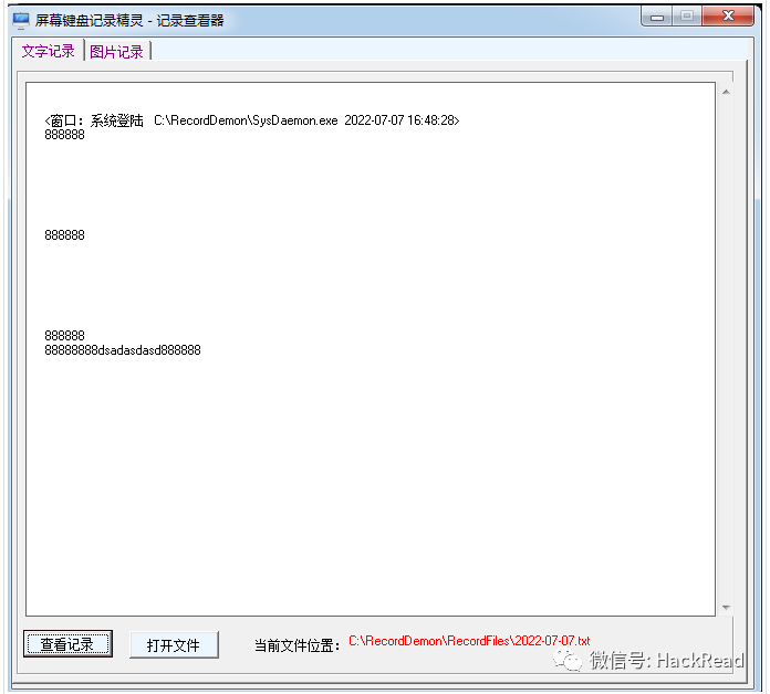 开启监控之后随便敲几下键盘,然后查看记录,可以看到我们刚刚敲的东西