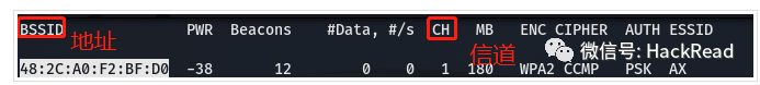 需要更改两个参数,信道和地址,这两个参数分别是扫描wifi时确定要破解的wifi参数