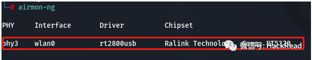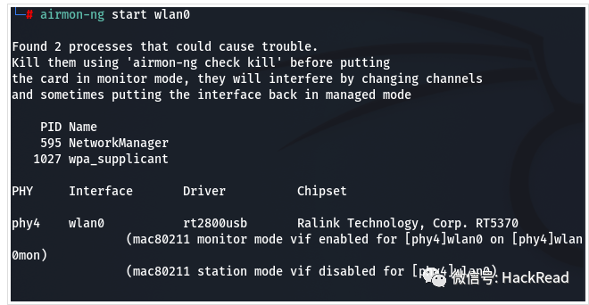 airmon-ng start wlan0(这个位置是根据的你interface名称来的)