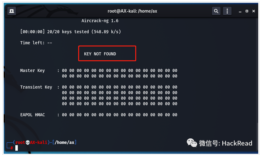 2.该攻击只对WPA-PSK/WPA2-PSK有效,对企业级802.1X认证热点(WPA-Enterprise)无效。