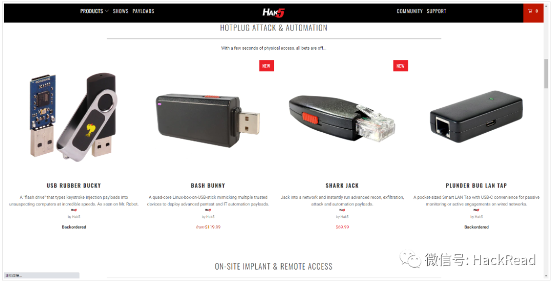 关于硬件,各大平台都有在卖现成的,例如万能的某宝,某鱼,或者Hak5,Hak5上面的价格十分《亲民》谨慎购买,橡皮鸭算是上面比较亲民的了50刀的样子,毕竟实际攻防的时候,丢地上最后去哪了都不知道,血亏几百刀。