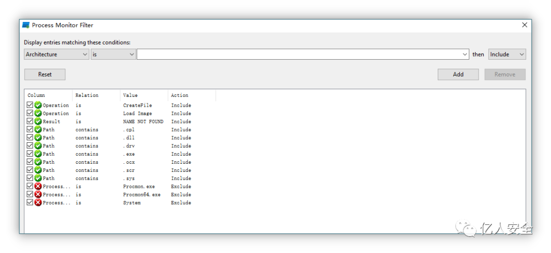 Process Monitor 查找可用 dll,设置如下图所示