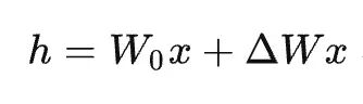 假设我们的模型深度为 l(layer 的首字母),每一层的参数为矩阵 W。并且,我们之前就已经训练好了一个模型,这个模型的参数冻结住,永远不改变了,记为 W0。那么,我们训练模型就是在不断改变下面这个公式的 ΔW 这个模型参数变更的增量。