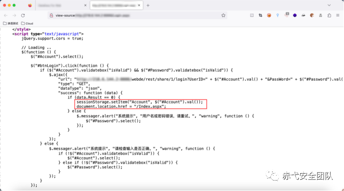 sessionStorage.setItem("Account", $("#Account").val());当登录成功后,设置⼀个sessionStorage,然后跳转到后台。那直接伪造⼀个sessionStorage不就完了。